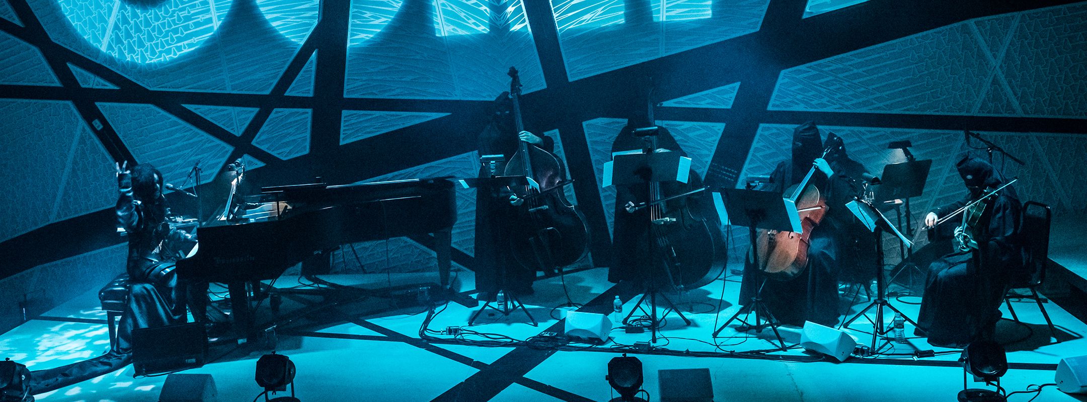 Funeral Doom Spiritual is a song of mourning for what Anthony Paul Farley calls “the motionless movement of death through slavery, segregation, and neo-segregation.” This new monodrama composed by M. Lamar and Hunter Hunt-Hendrix draws on themes of apocalypse, end times, and rapture found in Negro Spirituals, what Lamar calls “Doom Spirituals.” It explores radical historical expressions and futuristic longings for destruction of the white supremacist world order. Taking place a century into the future, the piece features the male soprano Lamar on piano, accompanied by two basses, two contrabasses, and electronics, enveloped in immersive light and video.