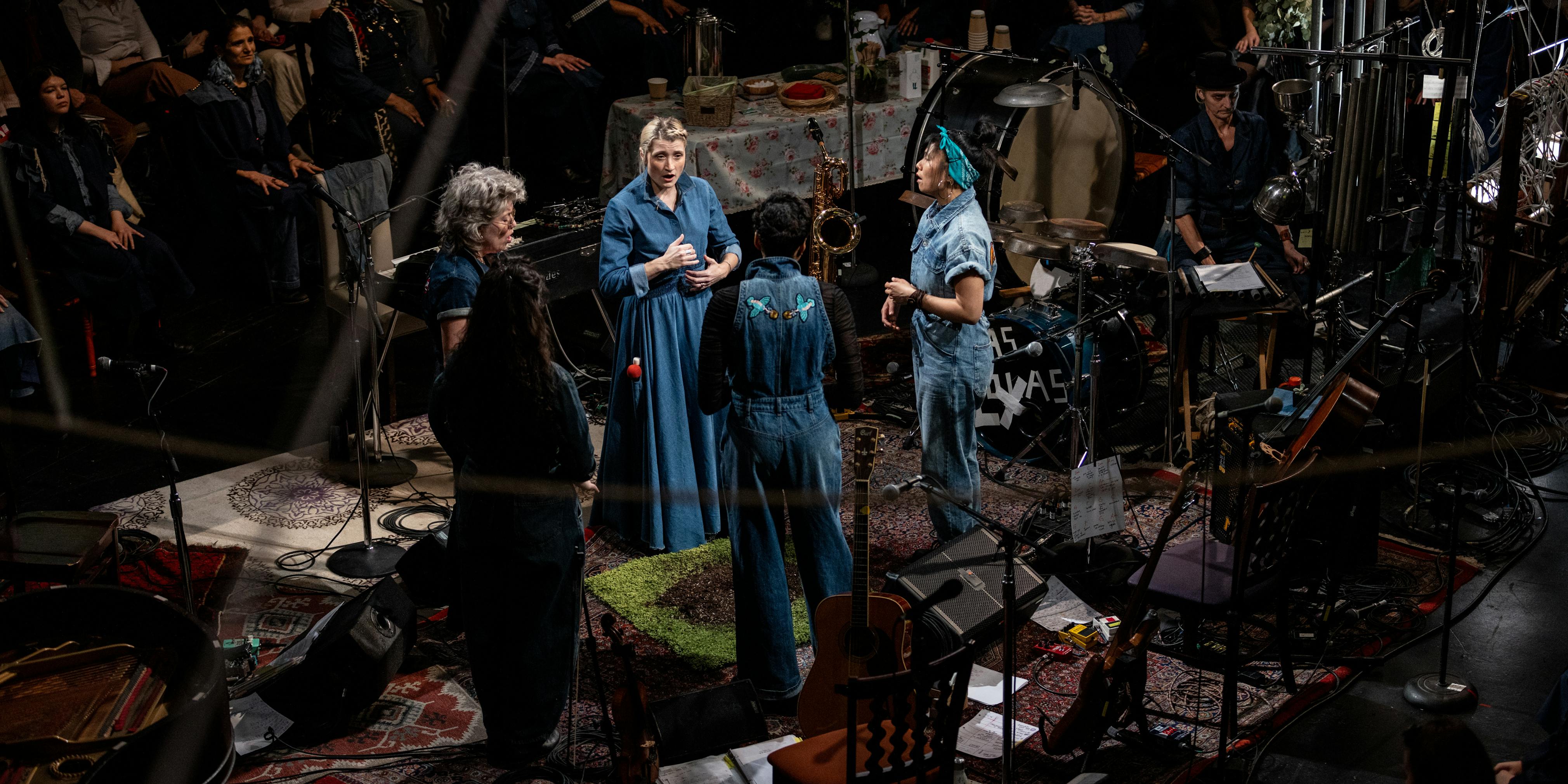 Terce: A Practical Breviary is a radical rethinking of a monastic 9:00 AM mass and an adaptation that reimagines the face of the “Holy Spirit” through the lens of the Divine Feminine. Sung by a community choir of 30-plus caregivers and makers, it is a wild meditation/celebration of the sacred mothers alive in all of us and how that manifests in regard to the Earth, each other, and ourselves. Inspired by ideas taken from three primary female mystics (Julian of Norwich, Hildegard von Bingen, and Robin Wall Kimmerer) this non-narrative song cycle blends new music, neo-soul, and gospel with traditional medieval organum— is percussed with active caretaking and craft making and is danced wildly. More of an event than an opera, it is built as an active ritual to celebrate and venerate our feminine alignment with nature and recover from living in the confines of a civilization built to control or ignore it.